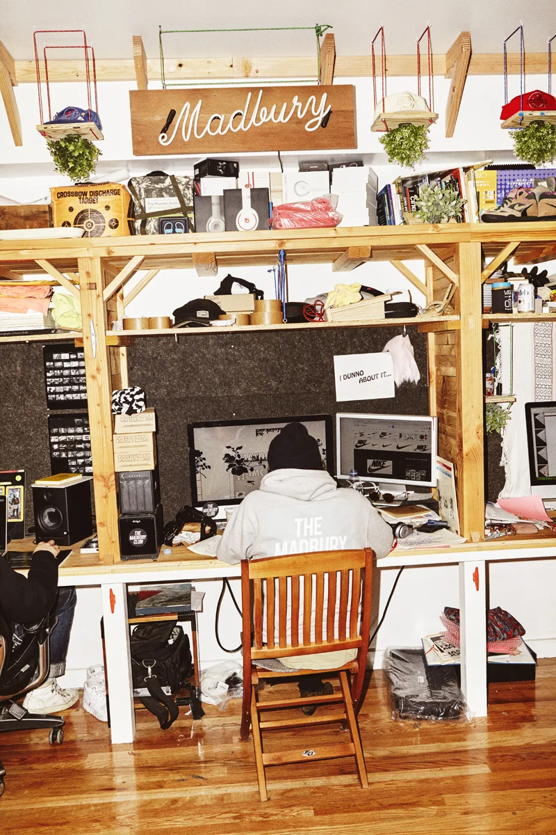 The result was .M158: the official office space of The Madbury Club—or, as Annand refers to it, “the passion zone.” In their new home, the guys have already designed an experimental photo lab for Nike, their own clothing line, and even a handmade custom, handmade birch desk with shelving space built into the legs.